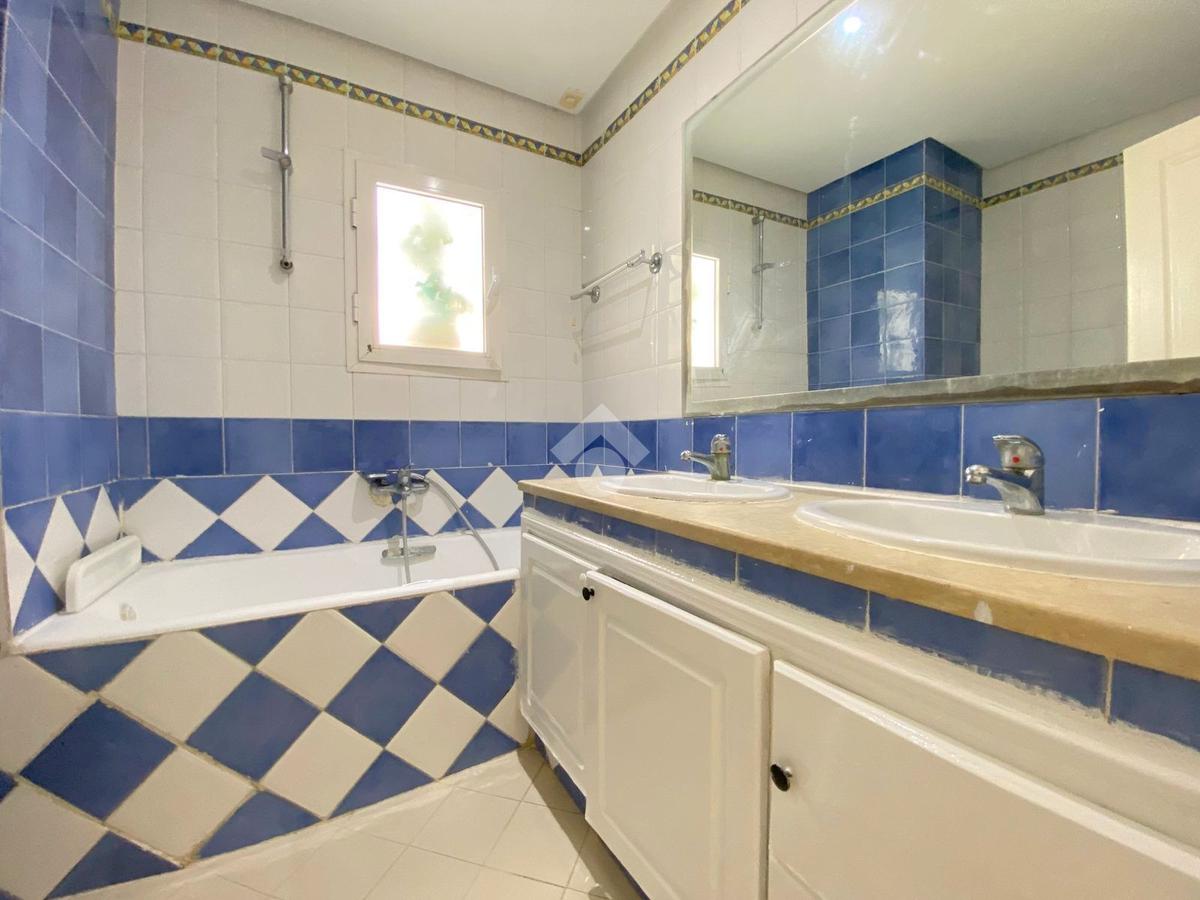 La cuisine est indépendante, elle est entièrement aménagée par des espaces de rangement et équipée par une plaque de cuisson, une hotte aspirante et un four électrique. Elle donne accès à un séchoir.
