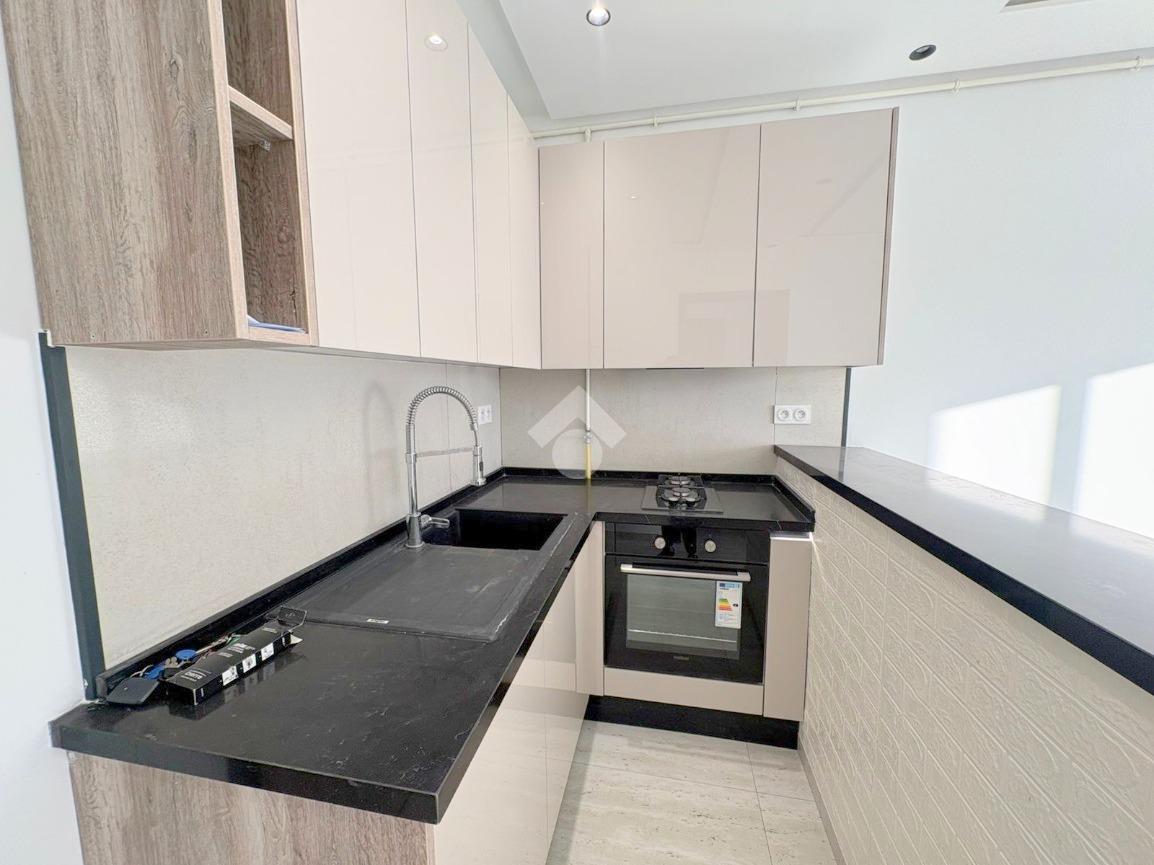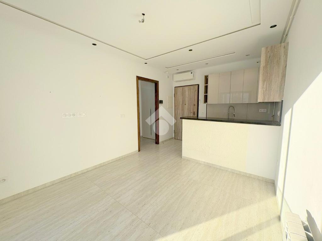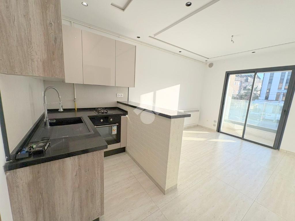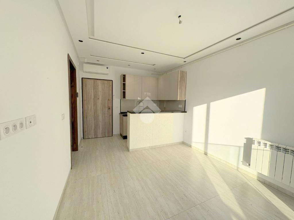 L’entrée s’ouvre sur un salon ainsi qu’une kitchenette équipée d’une plaque de cuisson, d’une hotte aspirante et d’un four salle de douche est également disponible.