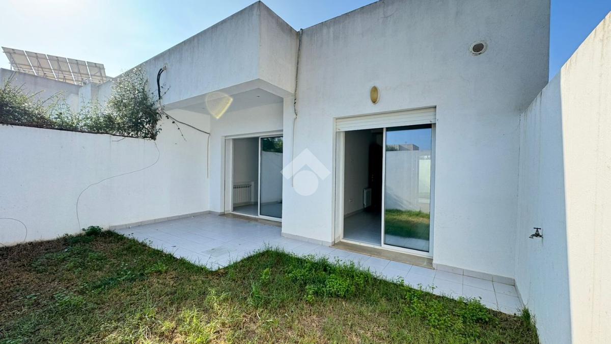 Ce rez-de-chaussée de villa de type S+2 avec jardin, situé à La Soukra.