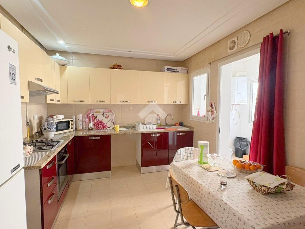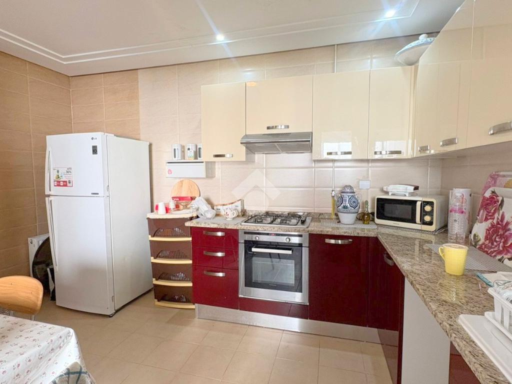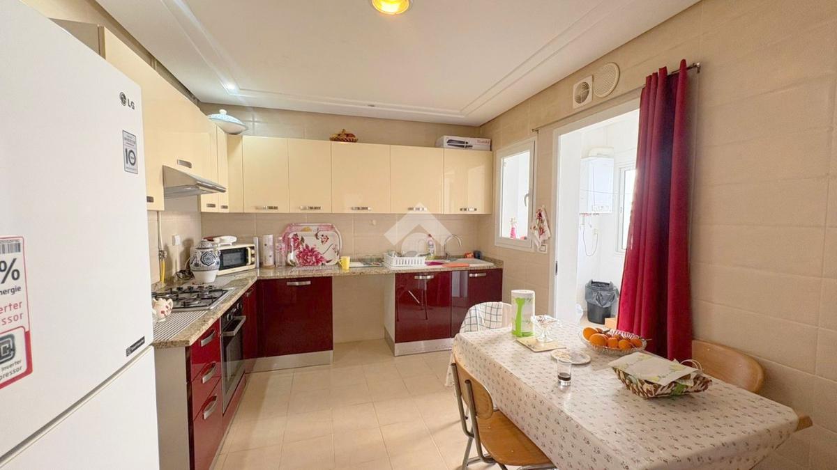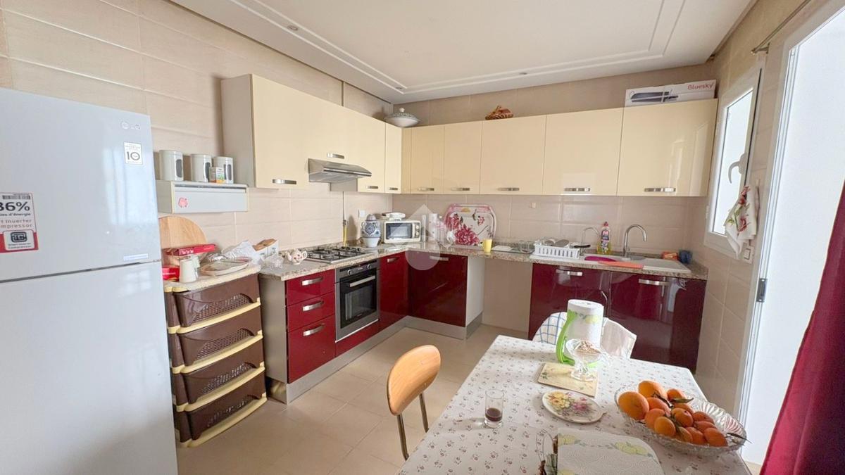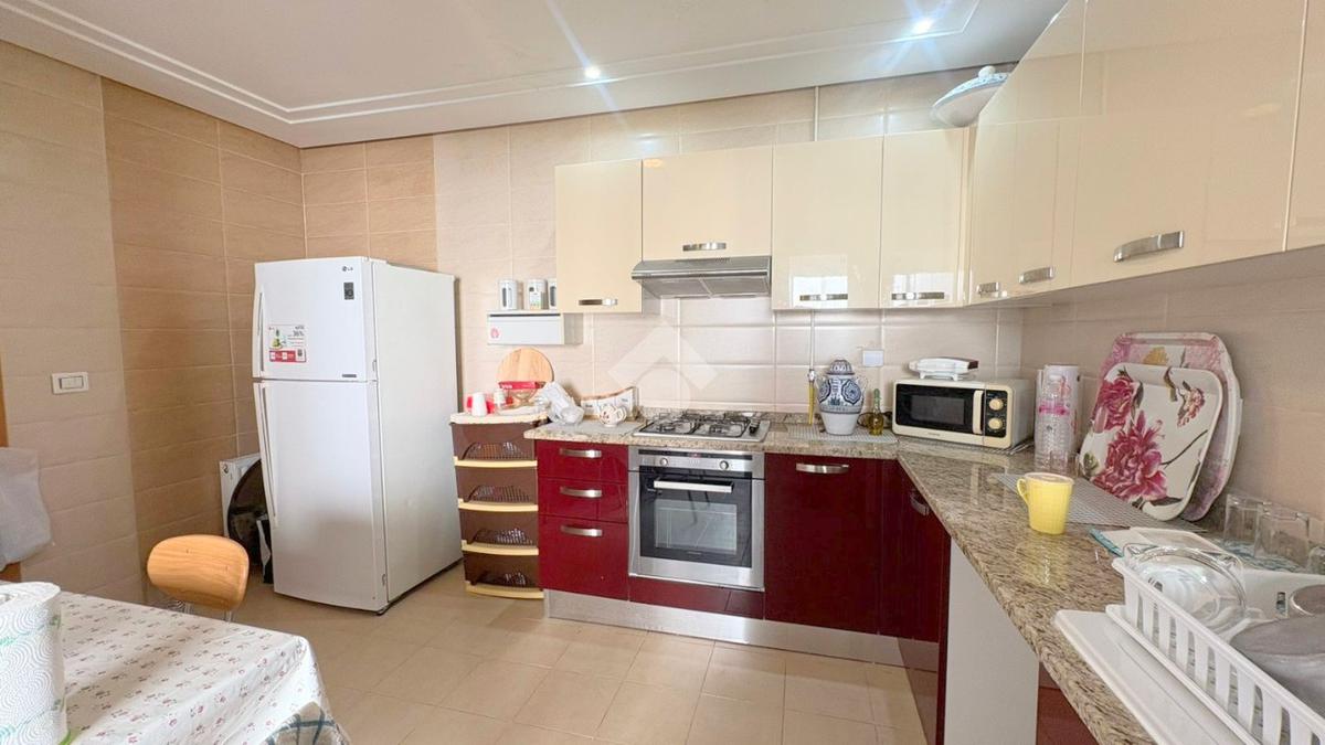 Dès l’entrée, vous découvrirez un salon spacieux et lumineux, ouvrant sur une agréable terrasse avec vue dégagée.Un point d’eau est également disponible.La cuisine est indépendante, entièrement aménagée et équipée d'une plaque de cuisson, d'une hotte et d’un four, et elle s’ouvre sur un séchoir partie nuit se compose de deux chambres à coucher, dont une avec un dressing, et partageant une salle de bain commune.L’appartement dispose également d’une place de parking au sous sol, d’un système de chauffage central et de climatisation de type split système.