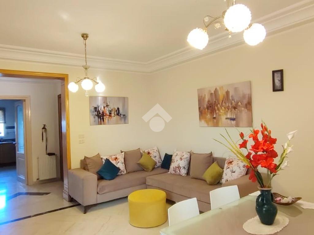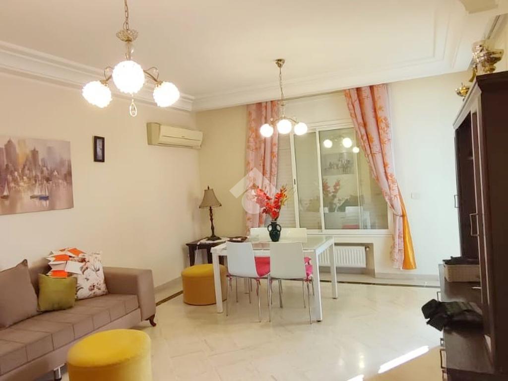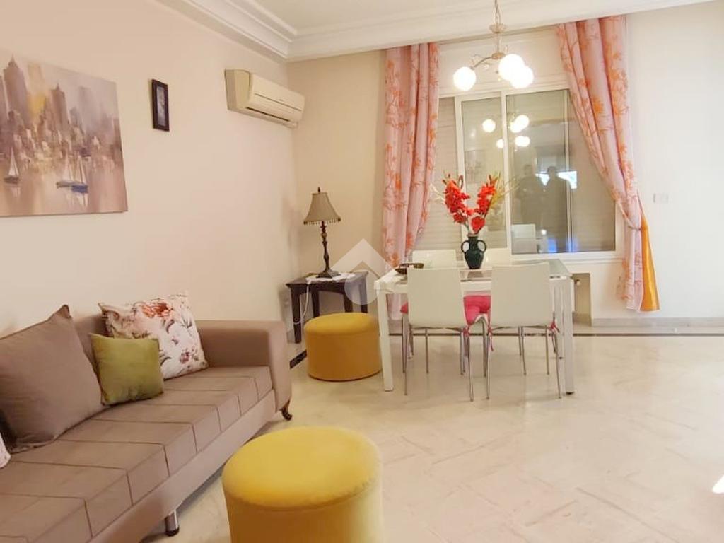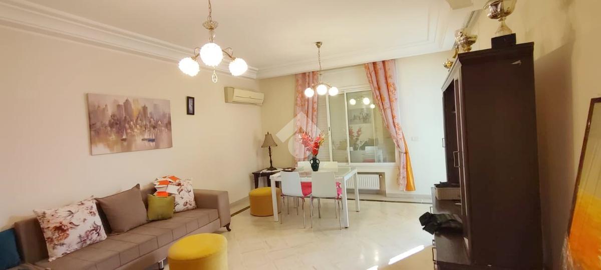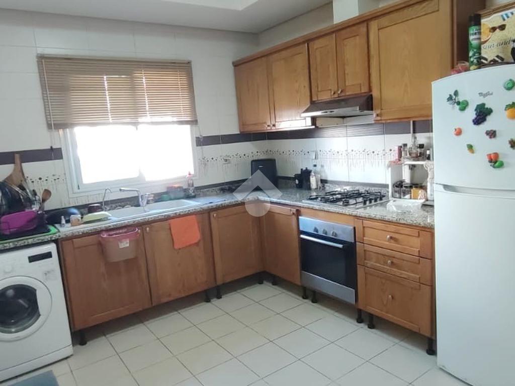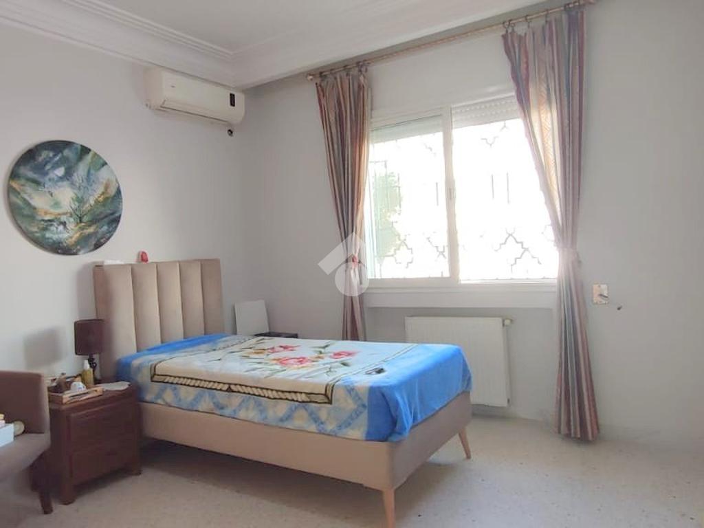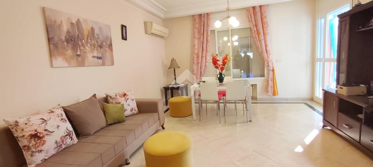 Cet appartement de type S+3 occupe le Rez de chaussée d’une résidence gardée en R+2.Il bénéficie d’une bonne orientation. La pièce de vie permet d'aménager un salon et une salle à manger. Elle offre également un accès à une terrasse. Une salle d'eau pour les invités est cuisine est équipée d'une plaque, d'une hotte aspirante et d'un four, et dispose d'un séchoir exploitable.La partie nuit loge trois chambres à coucher, elles se partagent une salle de bain commune. Elles sont équipées par dressing. L'appartement est équipé de chauffage central et de la climatisation en Split système.