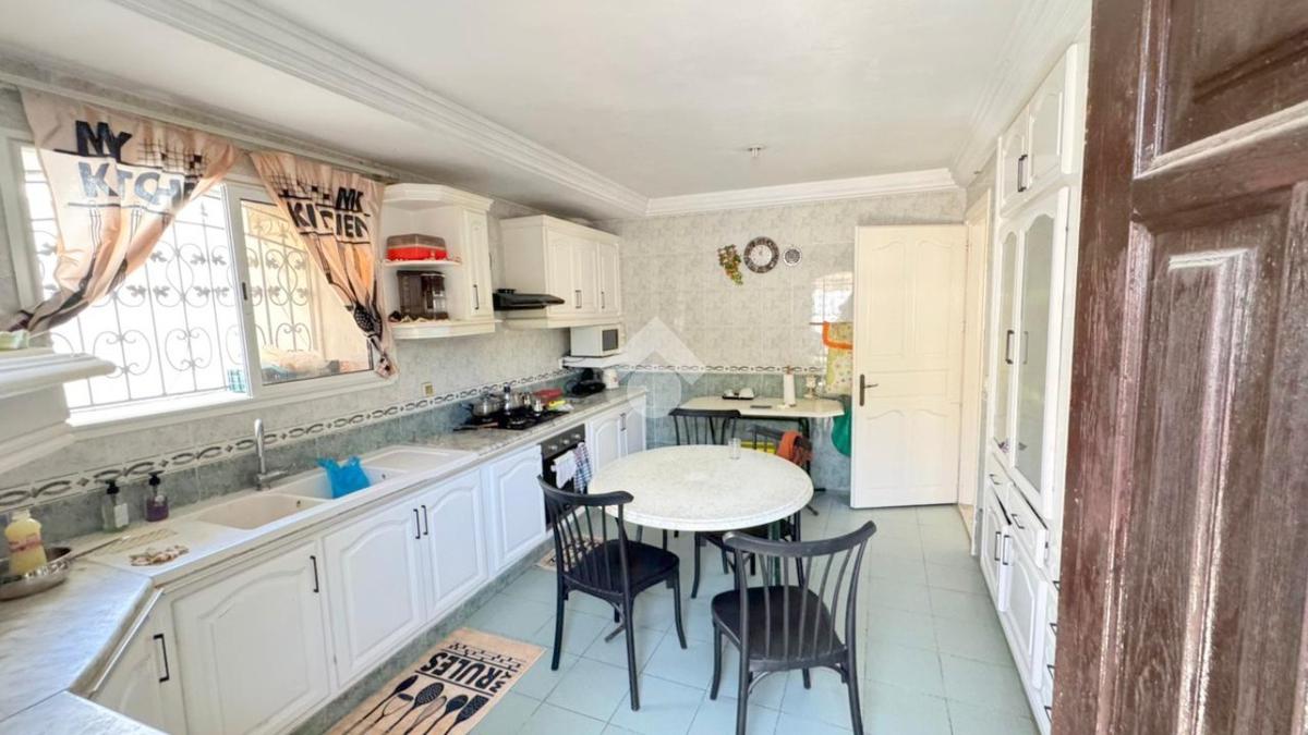 Cette villa érigée sur deux niveaux, elle est Implantée sur un terrain de 486m², elle se compose de deux étages, répartis comme suit :Vous trouverez un vaste salon lumineux, un séjour, ainsi qu’une cuisine ouvrant directement sur la terrasse,. Ce niveau comprend également une salle d’eau pour les invités et une chambre de service. L’étage dispose de trois chambres à coucher, toutes équipées de placards intégrés. Une salle de bain commune dessert ces pièces. Ce niveau bénéficie également d’une grande terrasse offrant une vue dégagée,